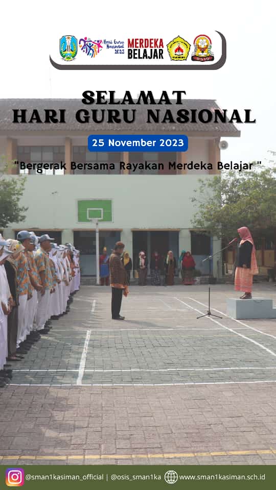 SMAN 1 KASIMAN - Hari Guru Nasional (HGN) setiap tahunnya diperingati pada tanggal 25 November. Peringatan HGN juga menjadi ruang apresiasi yang diberikan kepada para guru atas semangat demi terwujudnya pembelajaran yang aman, nyaman, dan menyenangkan bagi peserta didik selaras dengan nilai luhur yang digaungkan Ki hajar Dewantara.