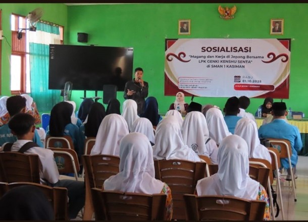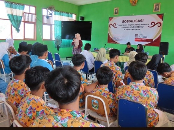 Kasiman - Rabu ( 01/10/2025 ), BKK SMA Negeri 1 Kasiman bekerja sama LPK GENKI KENSHU SENTA memberikan sosialisasi kepada siswa siswi SMA Negeri 1 Kasiman tentang peluang belajar dan bekerja di Jepang yang bertempat di Aula SMA Negeri 1 Kasiman.