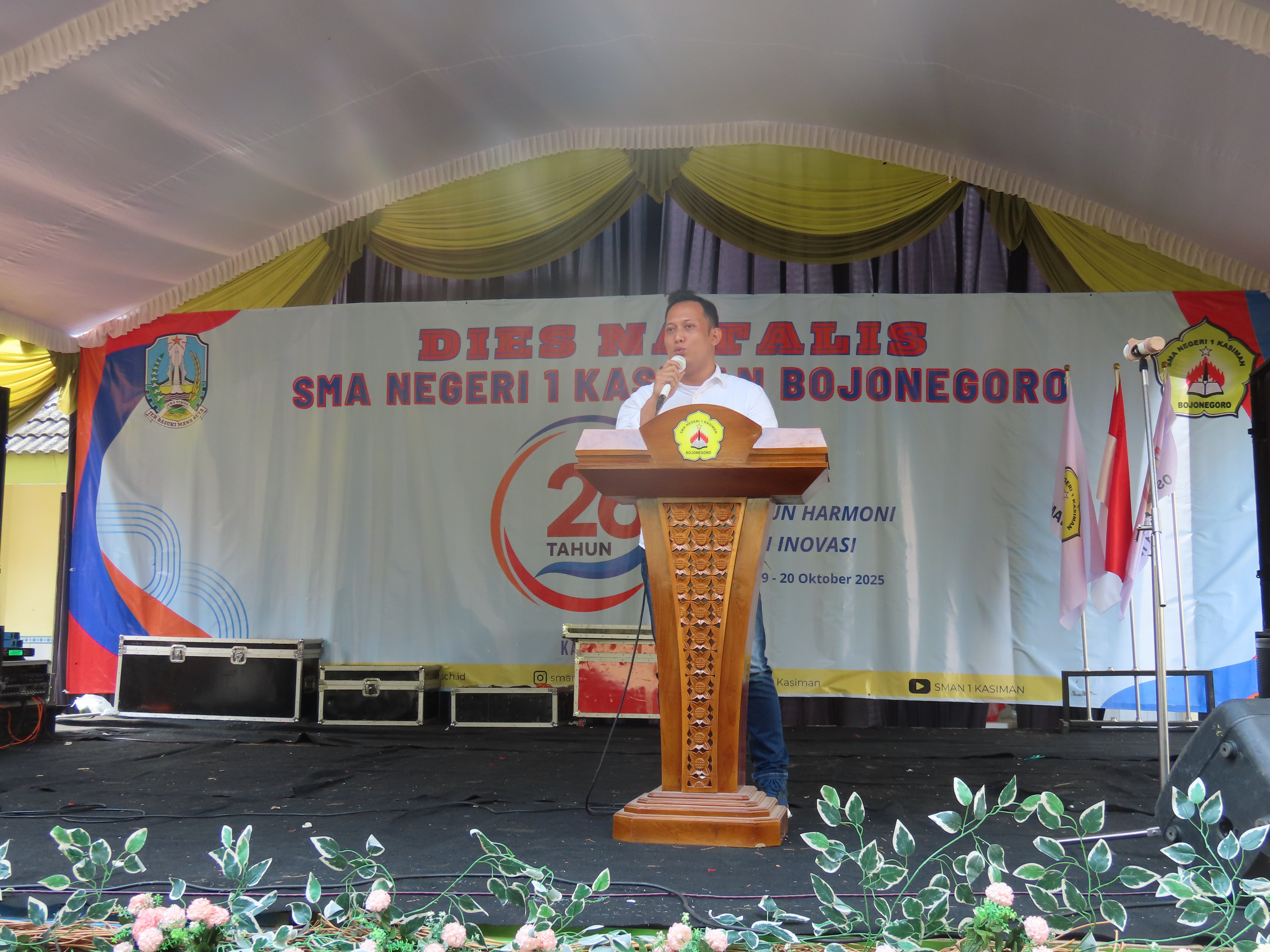 Kepala SMAN 1 Kasiman, Ibu Ninis Aris Wibawati, S.Pd., M.Pd, dalam sambutannya menekankan rasa syukur dan harapan besar untuk masa depan. "Hari ini adalah momentum kita untuk bisa berkembang menjadi lebih baik di usia 26 tahun adalah momentum kita untuk bisa berkembang menjadi lebih baik. Selama 26 tahun kita berproses dan ada hasilnya. Haqqul yakin bahwasanya peserta didik SMAN 1 Kasiman cerdas dan bisa berbuat sebaik – baiknya," ujar beliau, diikuti tepuk tangan meriah dari seluruh hadirin.