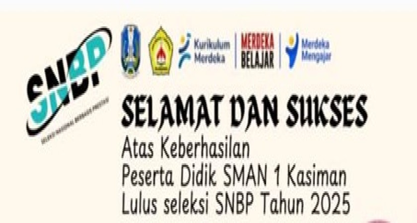 SMAN 1 KASIMAN dengan bangga mengumumkan bahwa sejumlah siswa/siswi kami telah berhasil lolos seleksi (SNBP) . Kami mengucapkan selamat dan sukses kepada para siswa/siswi yang telah memperoleh hasil yang luar biasa dalam seleksi ini.